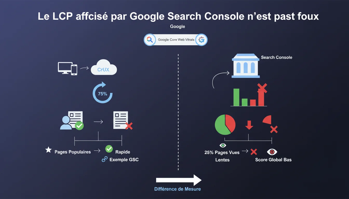 Non, Google Search Console n’est pas à côté de la plaque lorsqu’il signale un mauvais LCP global alors que les pages individuelles semblent ...